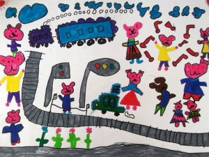 電車に乗っておでかけするところ。