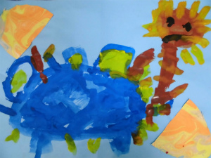 たまごから”ちくちくのかいじゅう”がでてきたよ。