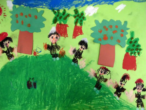 私とみんなでおみかんをとってる。
