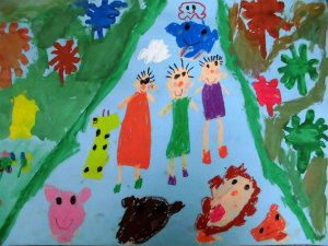 動物もいっぱいきて、私とお友達がぞうさんを遊びに連れていった。