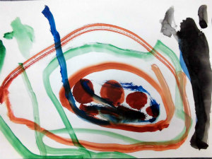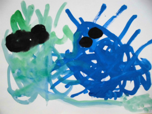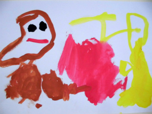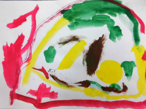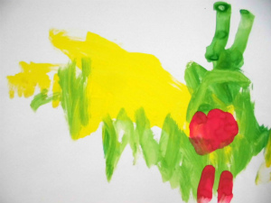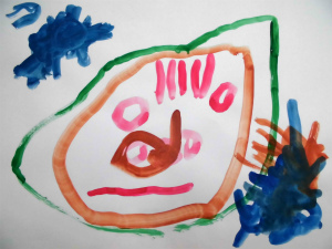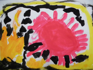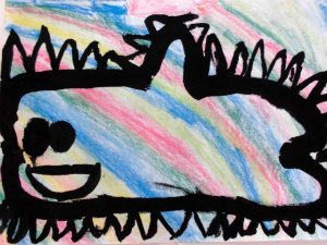 恐竜のお母さんがたまごを産んだ。ちがう恐竜がたまごを盗んだから火をふいた。