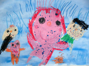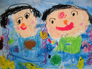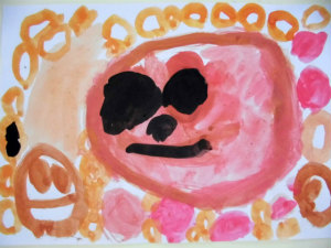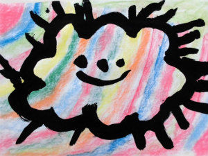 みんなでお祭りにきたところ。あめちゃんを買ってもらって、みんなで食べる。