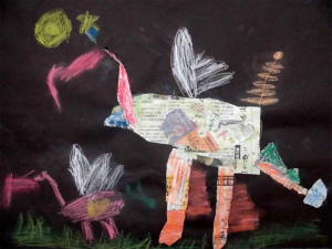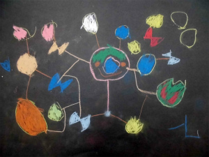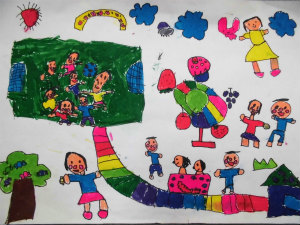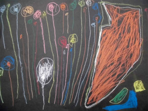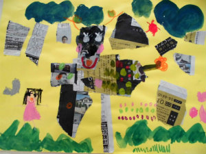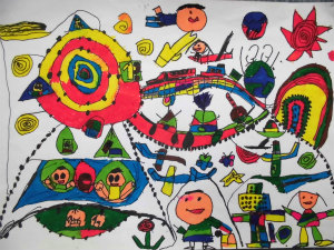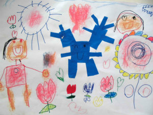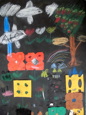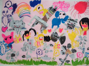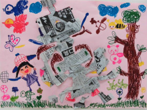 お花とロボットと飛行機とすずめがパーティーしているとこ