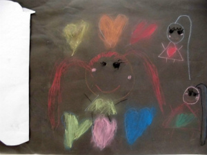 おうちの乗物。ハートのソファーがあって、階段をあがったらママの部屋がある。