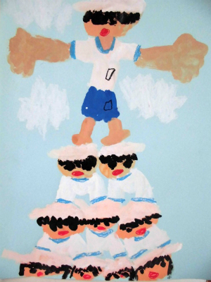 『組体操の12人ピラミッドで一番上にのって「やーっ!」って言ってるところ。』