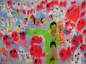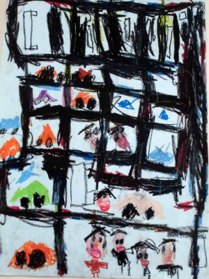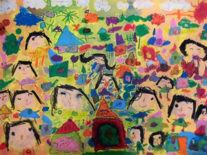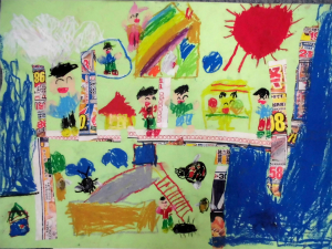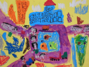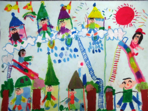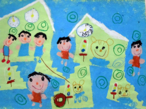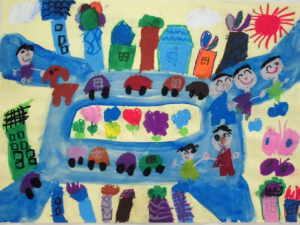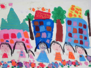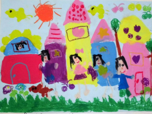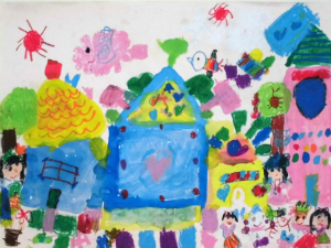 佳作子どもたちがお話ししながら歩いてて、いろんな形のきれいなおうちがいっぱいある。