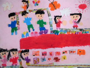 努力賞幼稚園とか保育園があって、みんあきれいにおもちゃをなおしていた。みんなが虫探しをして遊んでる。