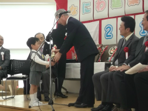 努力賞お父さんと一緒に魚釣りに行った。その後、友達とサッカーをして、お母さんが迎えにきた。