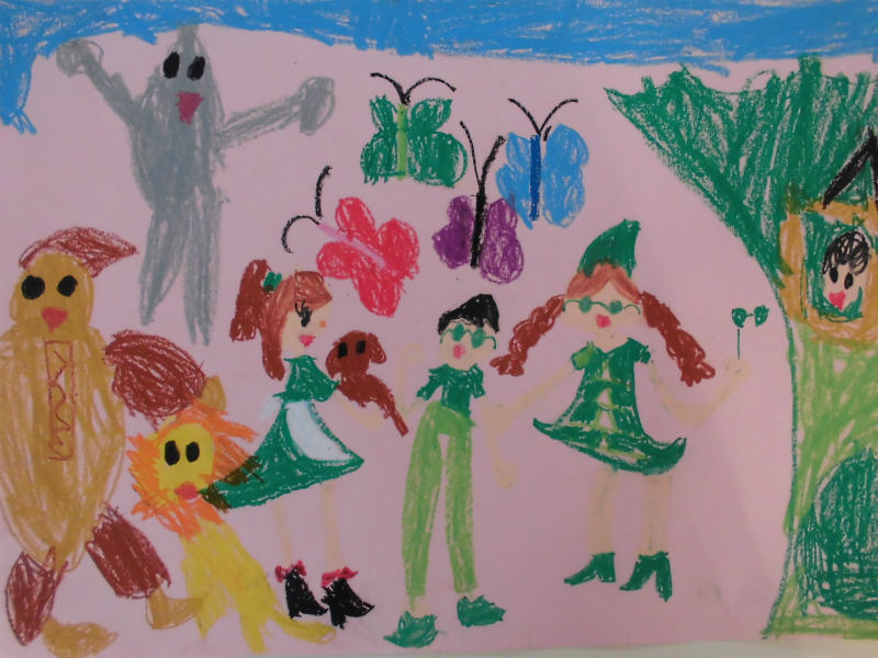 『ドロシーが帰ってきて、おじさんが「ドロシーが帰ってきた!」って言ってる。』