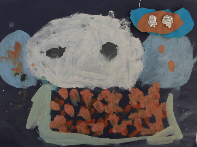 『私とお友達がお泊まり保育でご飯食べてる。』