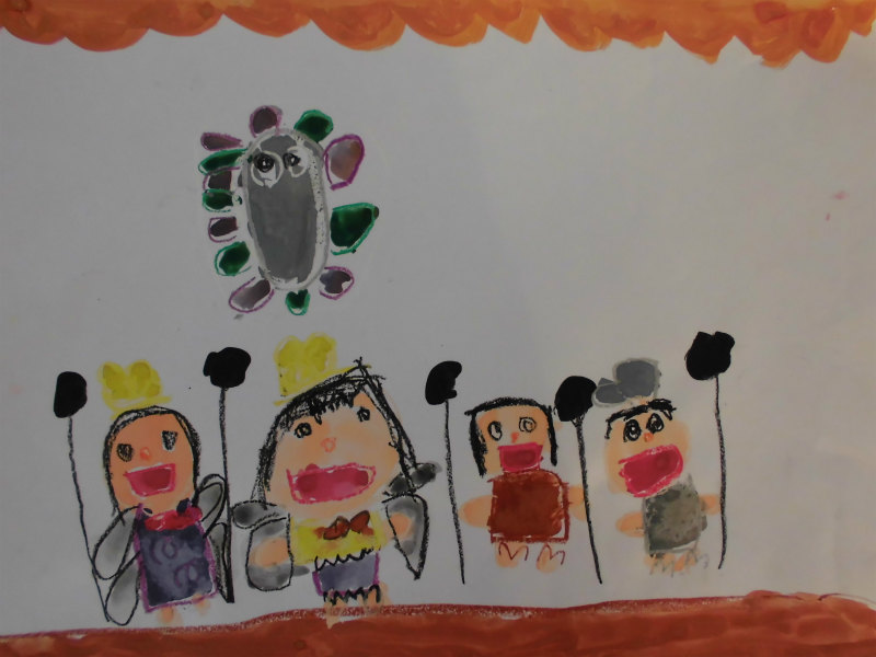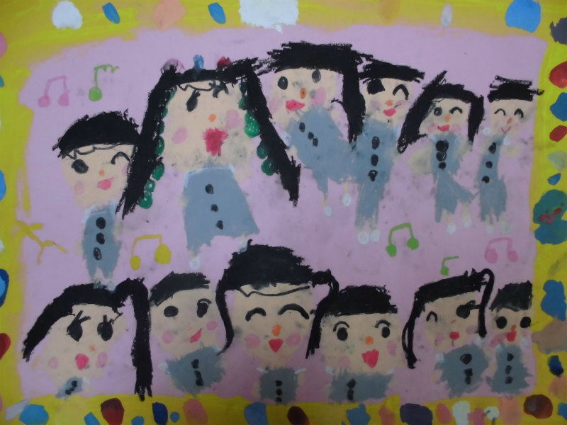 『皆で歌うたってる。笑顔で、お客さんが喜んでくれるかな?って唄ってる。』