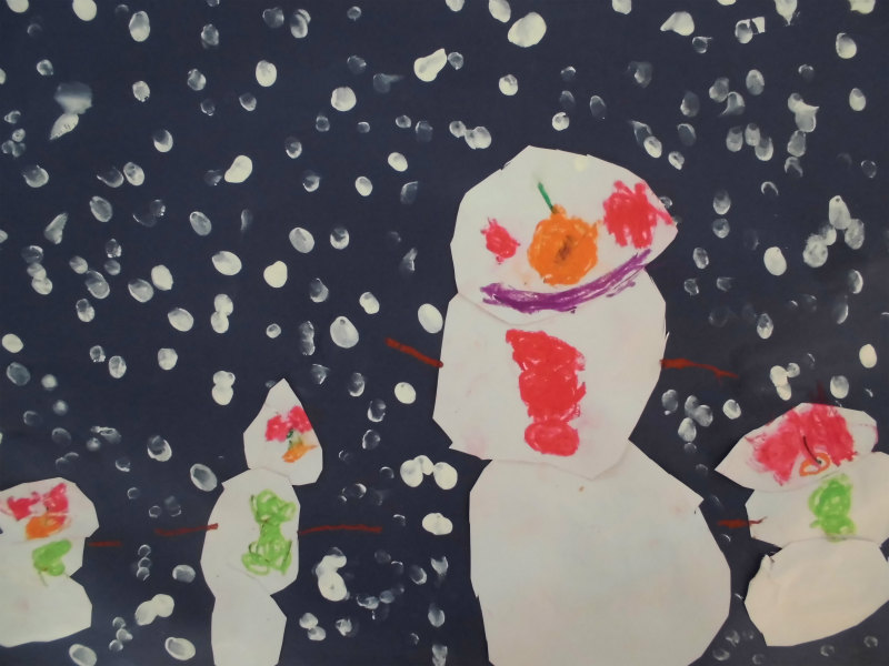 『ゆきだるまがゆきだるまのおともだちとゆきであそんでいるところ』