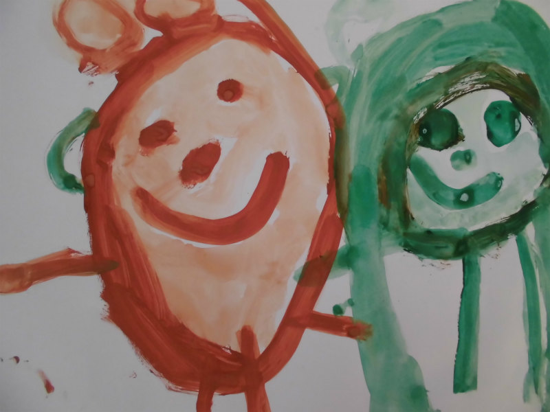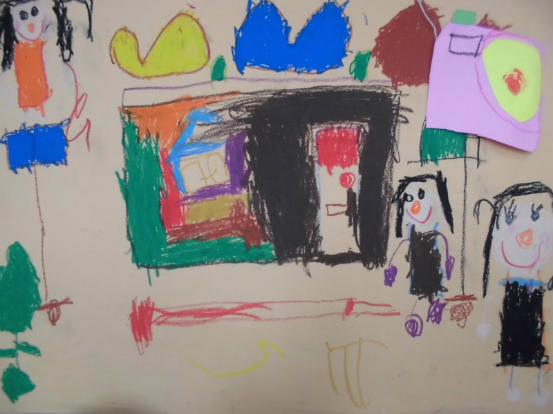 『お友達とママと妹がお料理作りにお部屋に入った。』