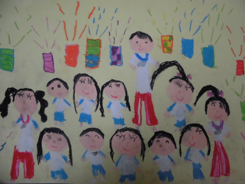 『お泊まり保育に行って、先生達と皆で花火見たところ。』