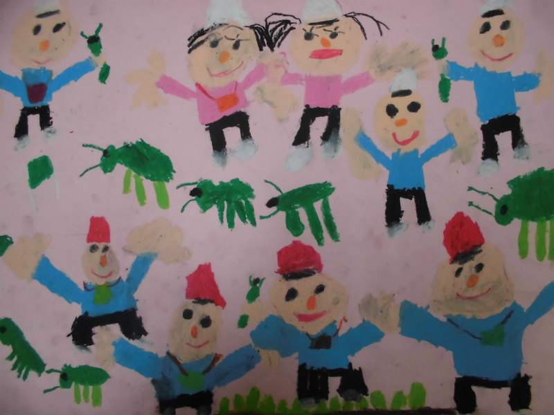 『神崎川に皆で虫とりに行ったところ。たくさん虫つかまえた。』