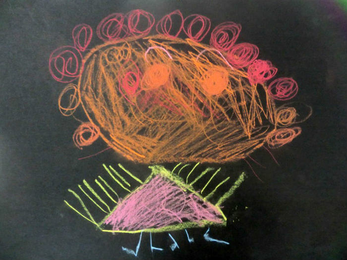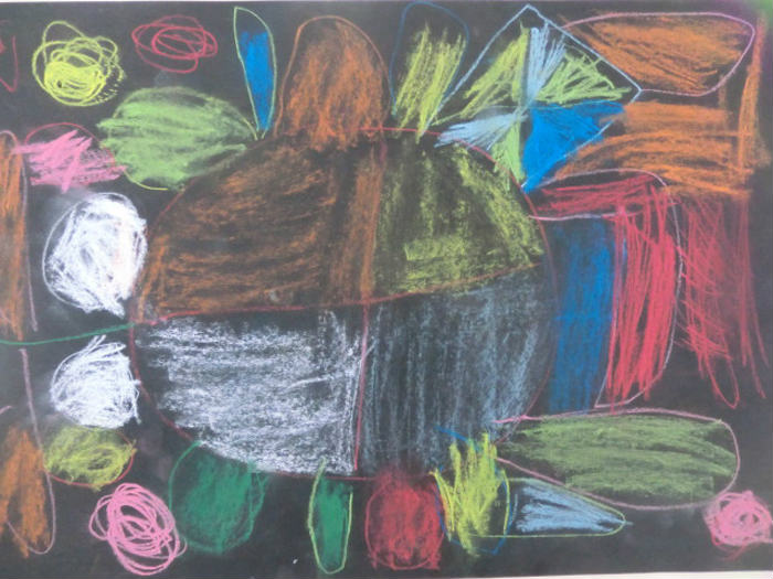 (クレパス自由画○△□)