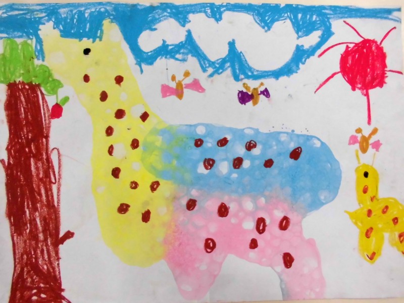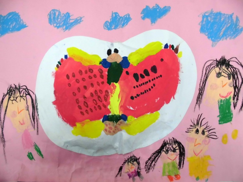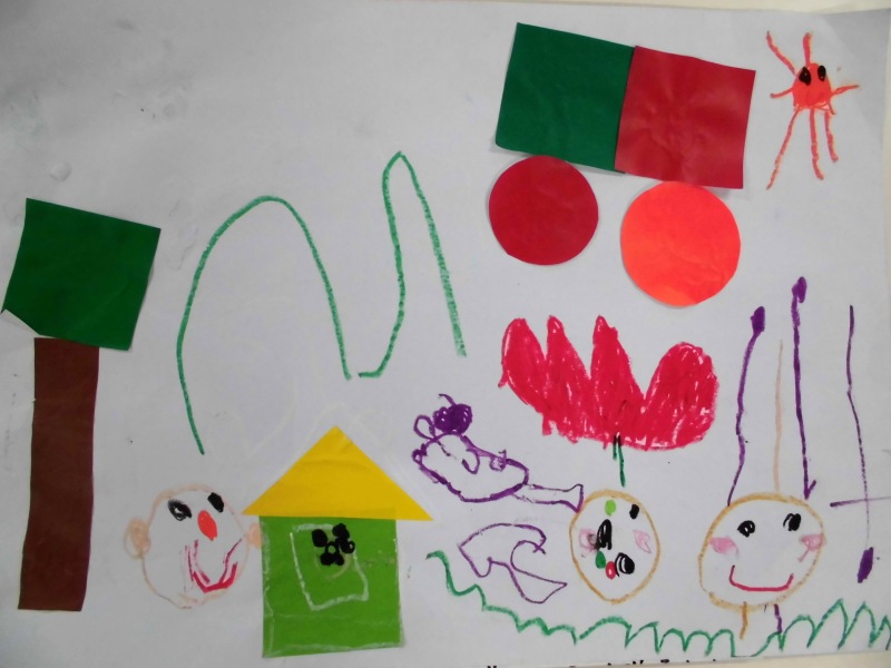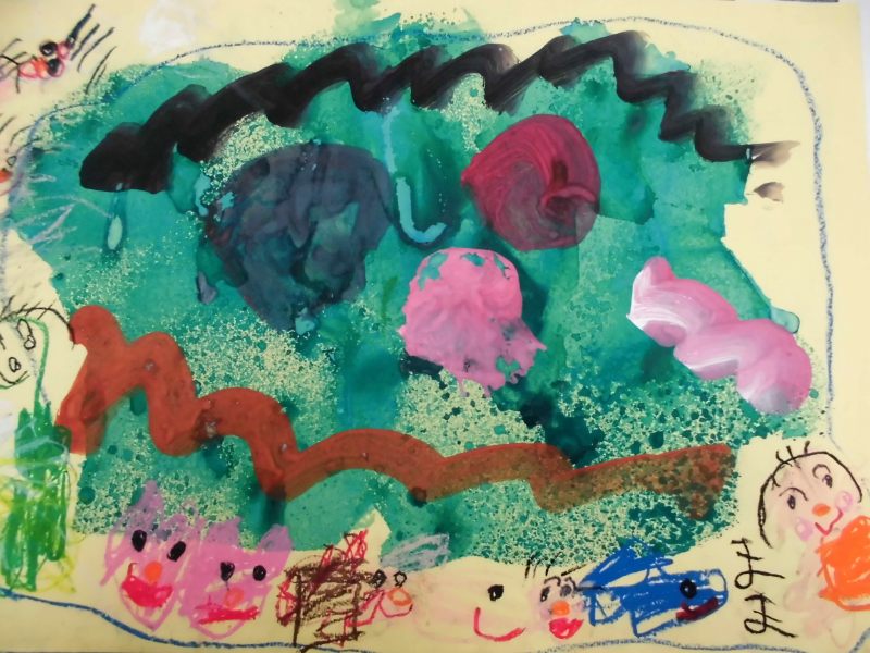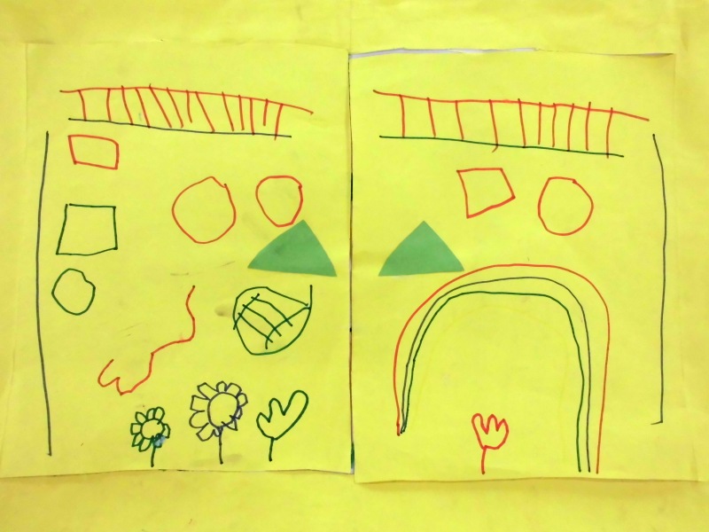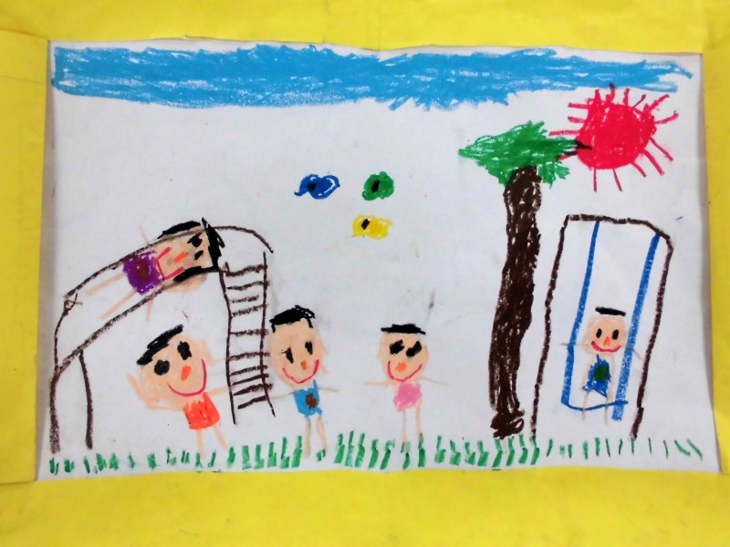 『公園でパパとママがかくれんぼをして遊んでる。私は鬼ごっこしてる。楽しかった。』