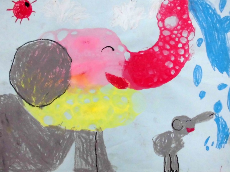 『うさぎの子どもが走ってきて1位になって、えりかにトロフィーもらった。』
