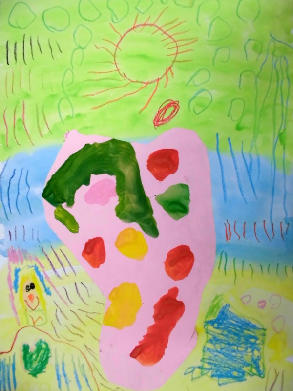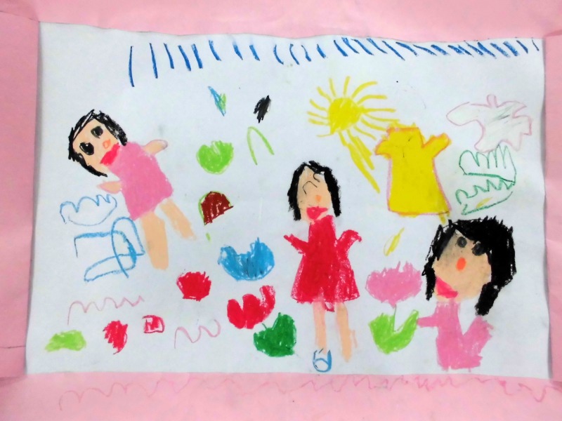 『おばあちゃんちにおねえちゃんとおかあさんがいてる。わたしは、エルサのこおりのおしろにすんでる。』