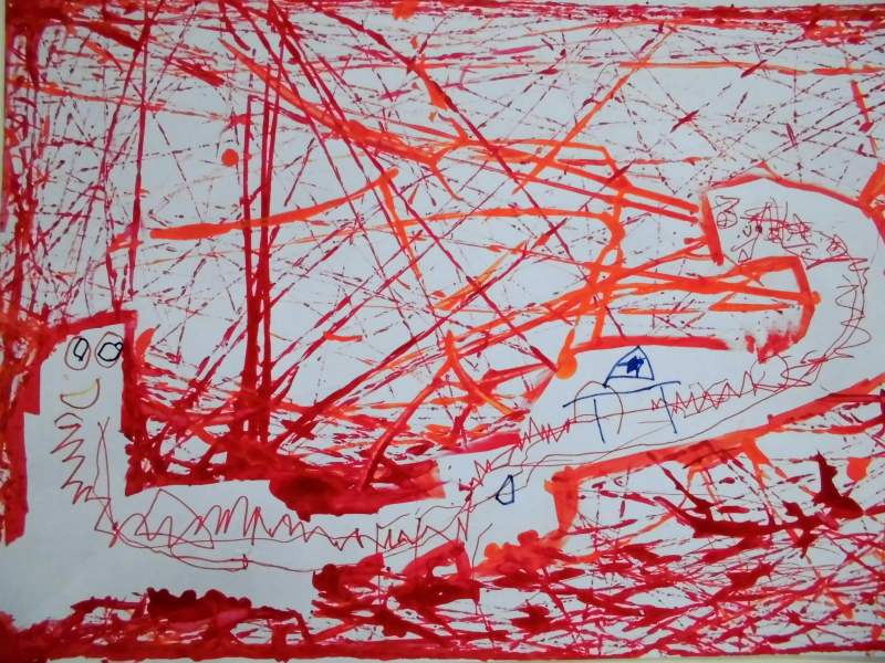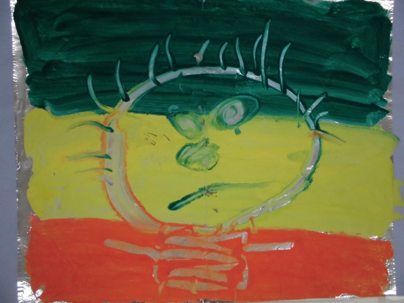 (ステンシル「へんてこかいじゅうとあそぼう」)