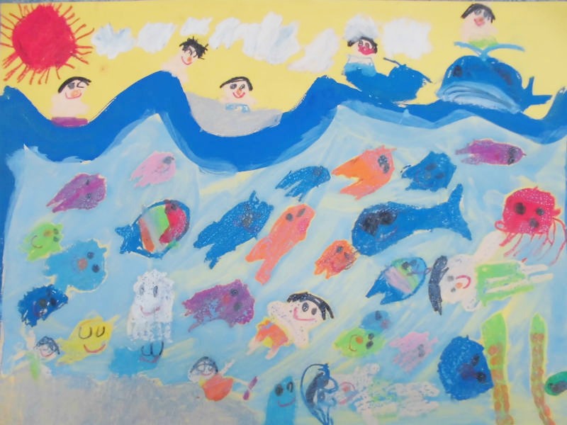 『海のおうち』おうちの上でも遊べたり、おうちの中に入った人は、みんなお魚とお話できるようになる。
